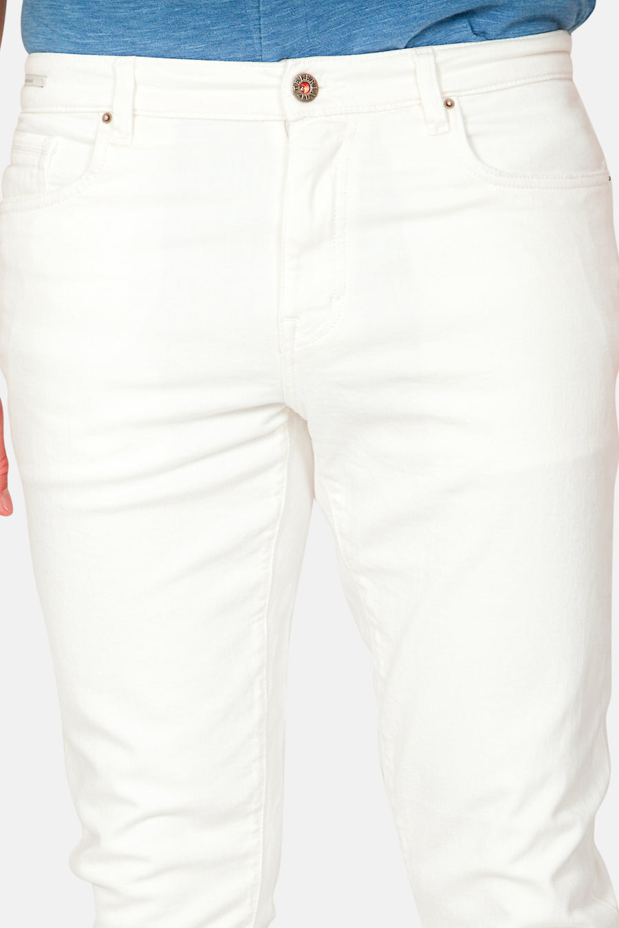 - Color: White- Slim- Hand-soft feel- Hand-dyed fabric- 94% Cotton, 4% EME T400, 2% Elastane- Made in Italy- Style #: COBRAF19-TL-800
