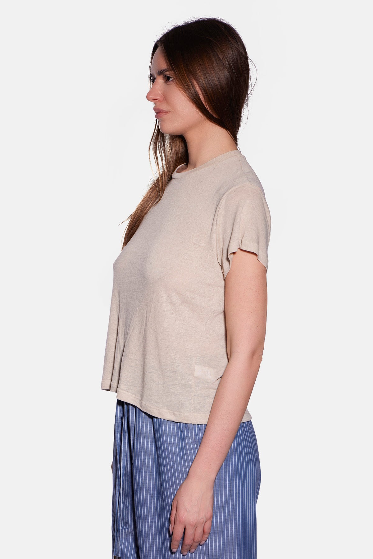 An easy everyday tee with a breezy feel. Made from linen and cropped just right—this one’s perfect for warm days and laid-back plans.