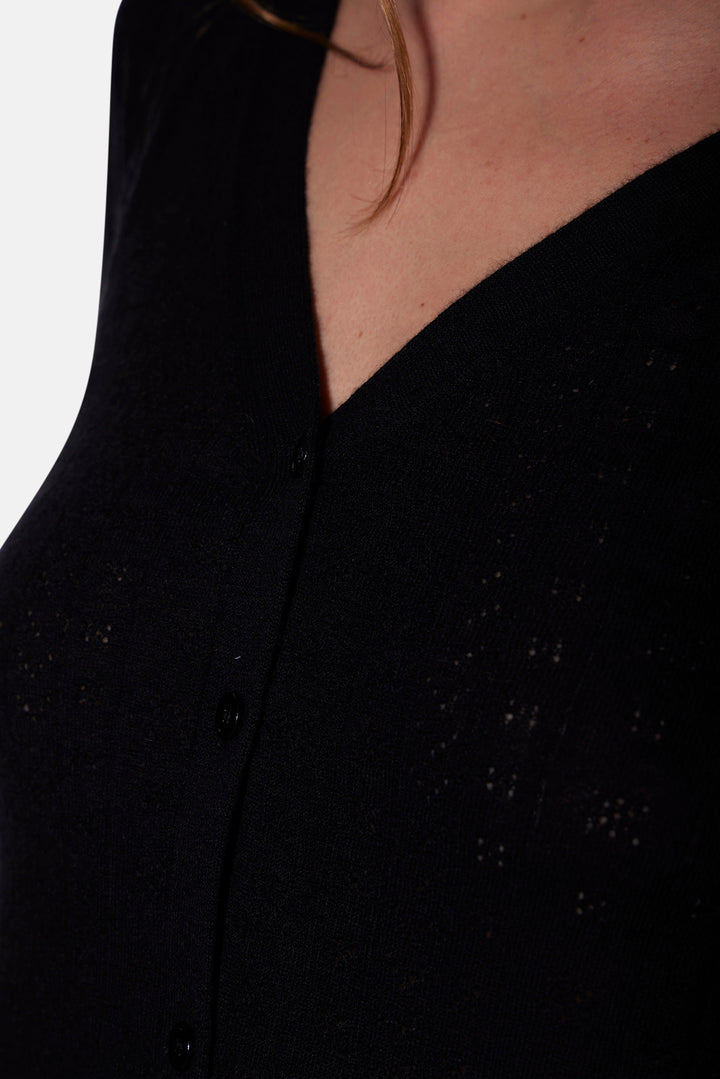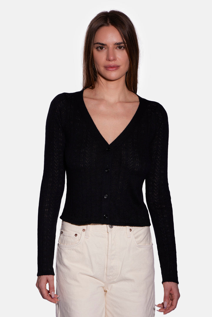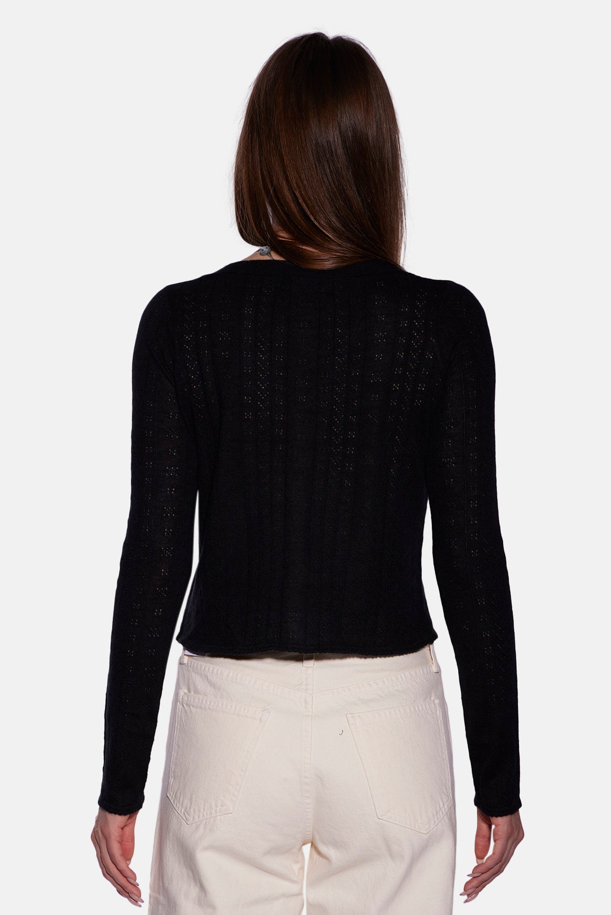 Soft, airy, and subtly sweet—the Claire Cardigan is your go-to lightweight layer. Crafted in fine cashmere with delicate pointelle detailing, it’s cropped just right for high-rise denim, easy dresses, or layered moments.
