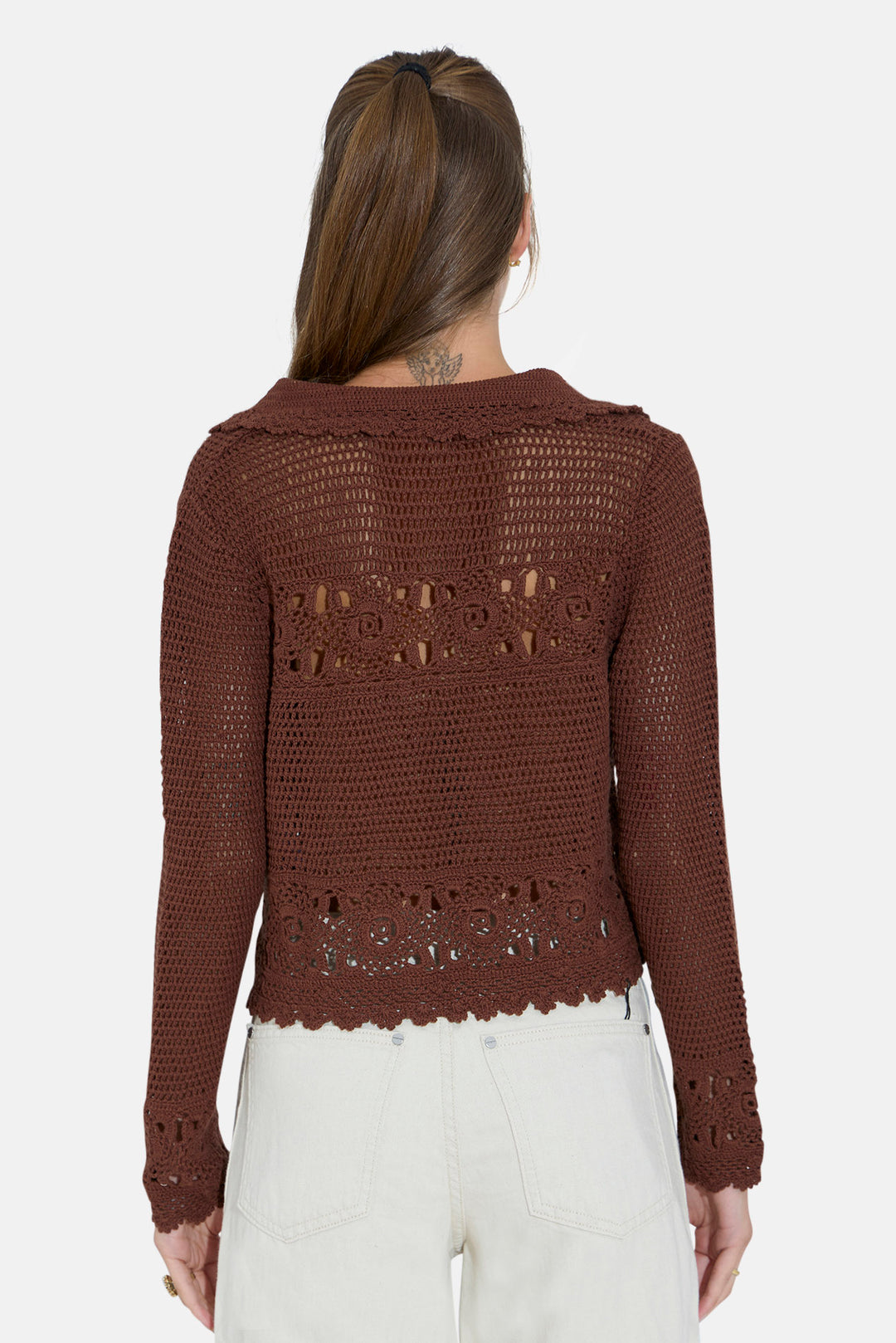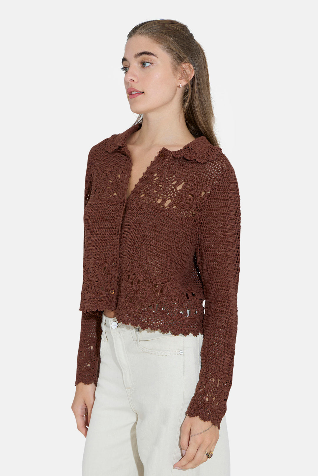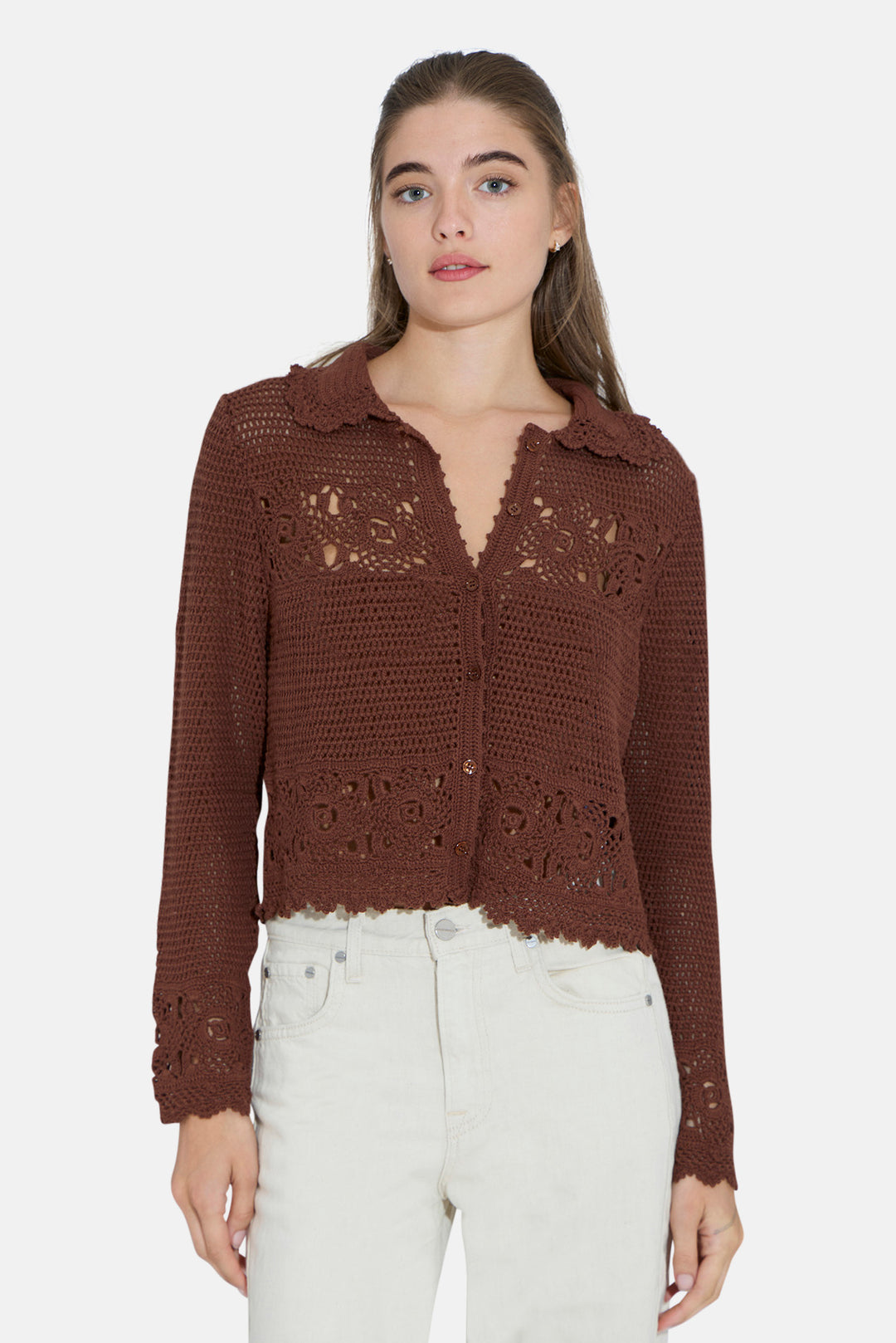 Our bestselling Molly Crochet, now in a long sleeve cardigan. The Felicity is hand-crocheted with intricate floral detailing, a scalloped edge, and a perfectly cropped fit. It’s romantic, vintage-inspired, and made to stand out.