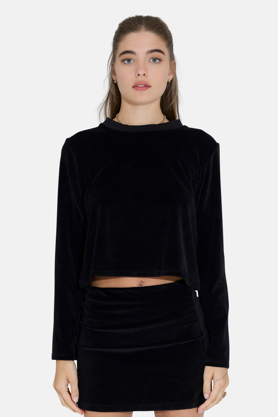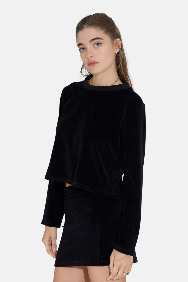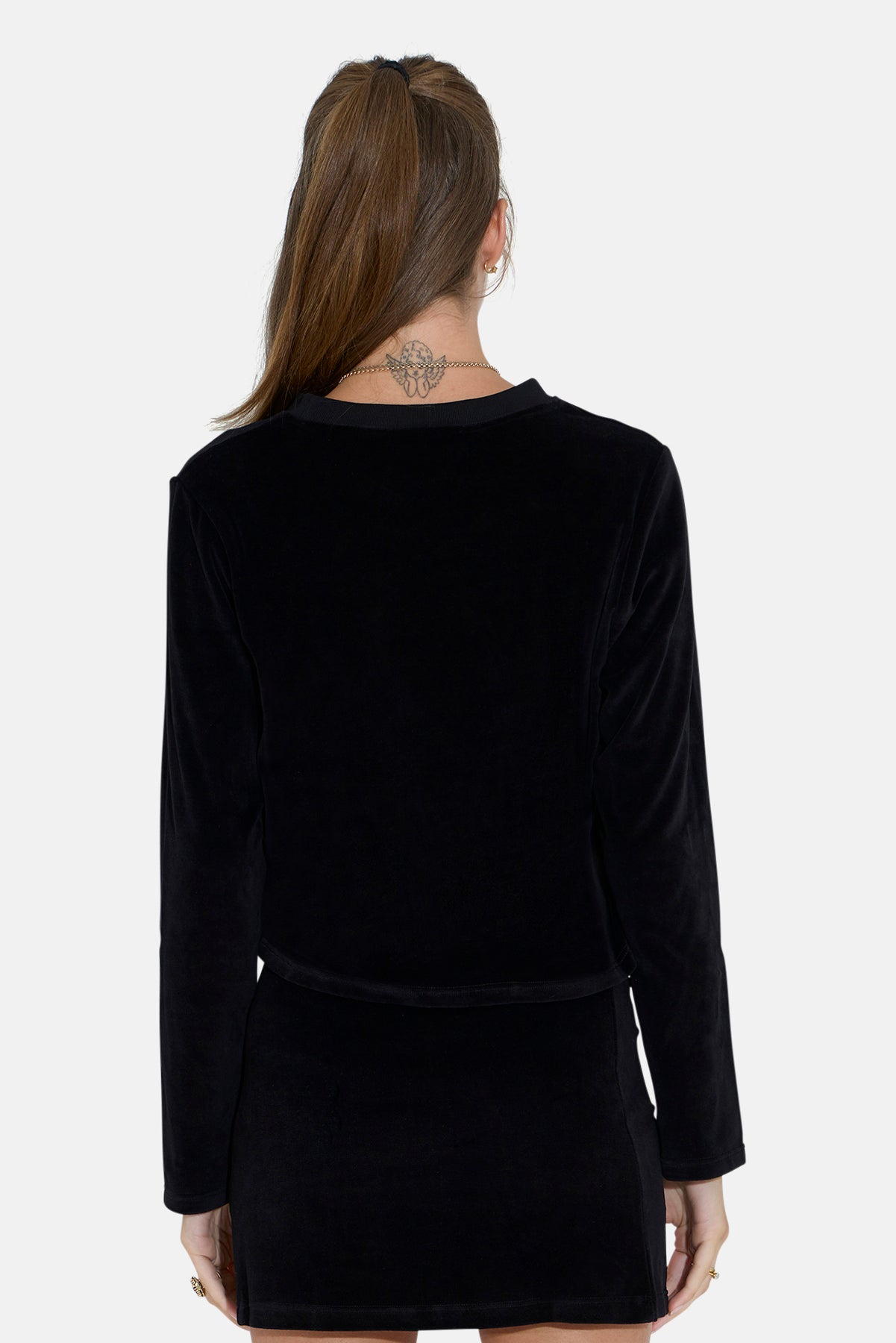 Cut from plush velour, the Jayne features a relaxed fit, subtle crop, and just the right amount of slouch. Pair it with the matching pants or mix it into your rotation for an instant cozy upgrade.