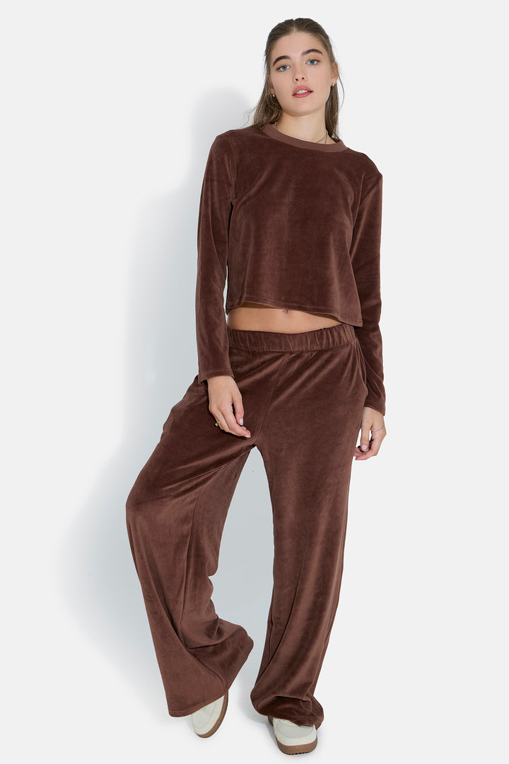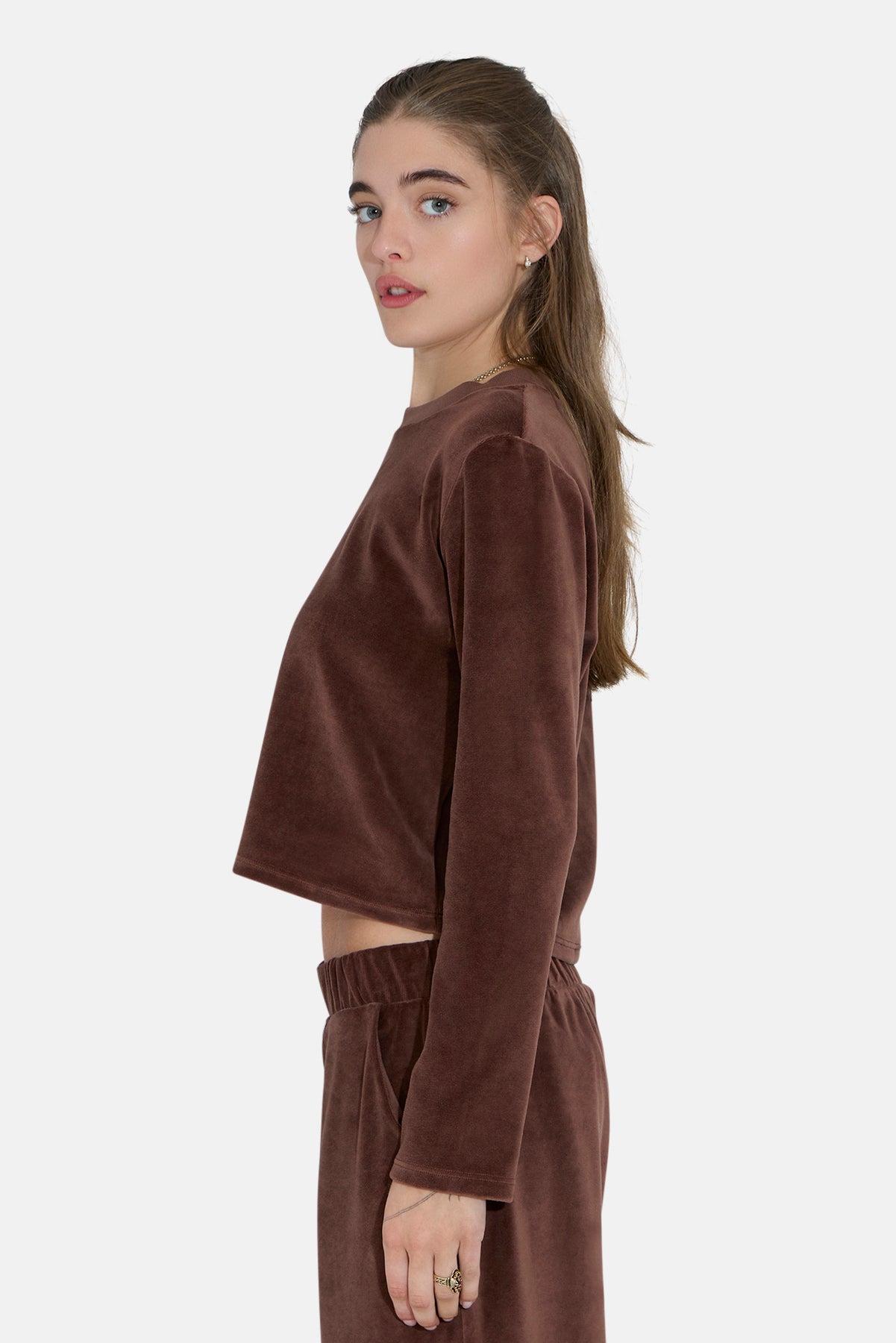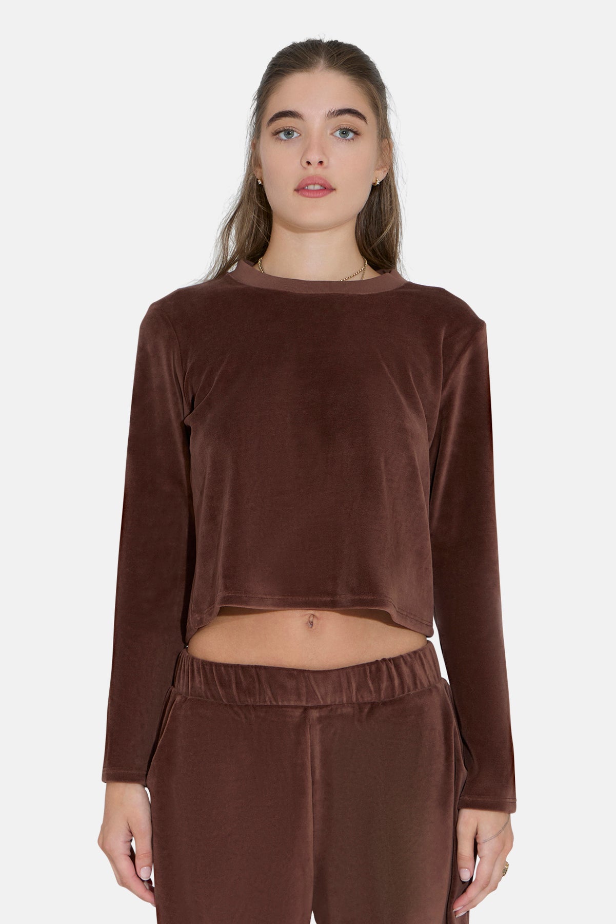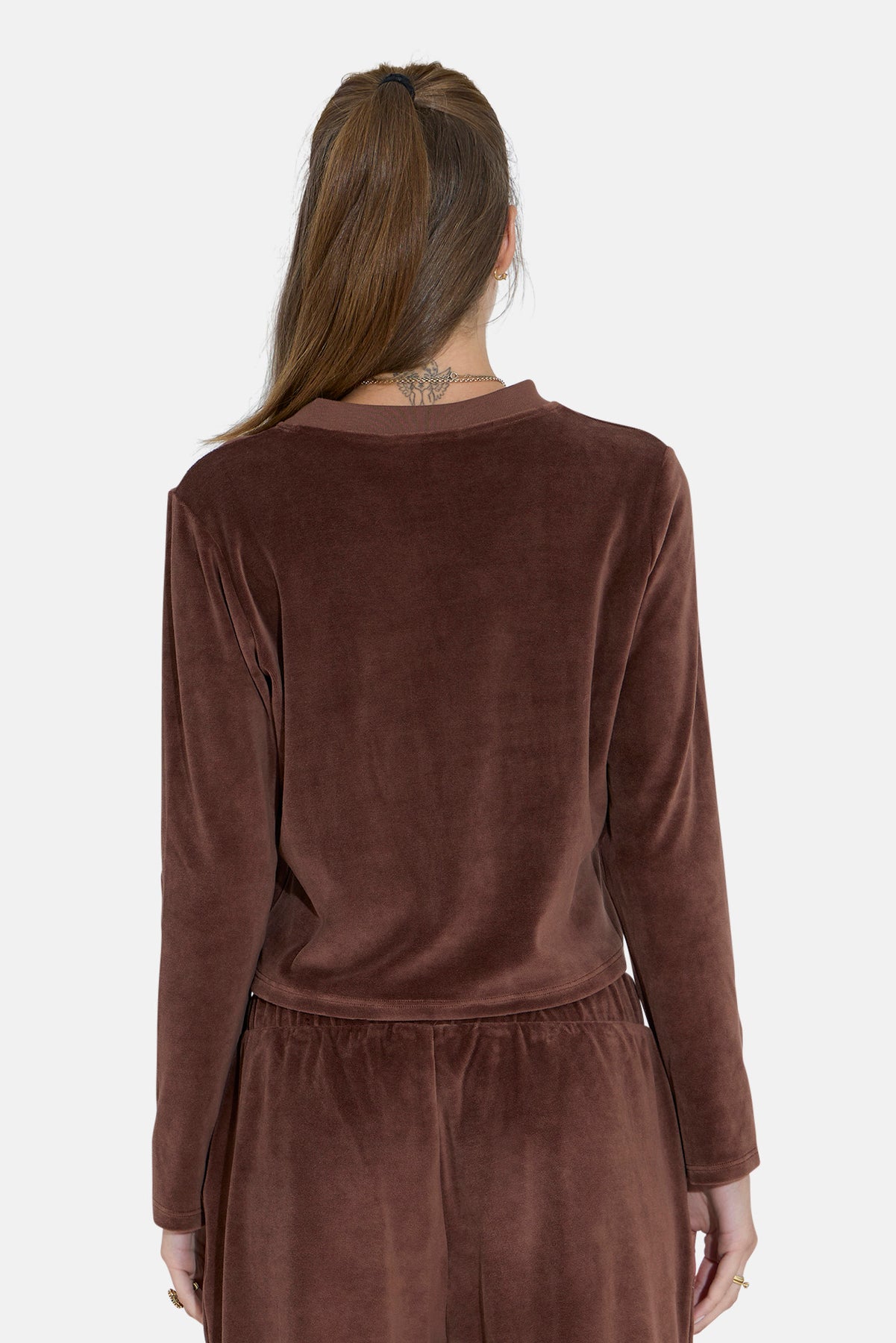 Cut from plush velour, the Jayne features a relaxed fit, subtle crop, and just the right amount of slouch. Pair it with the matching pants or skirt, to mix it into your rotation for an instant cozy upgrade.