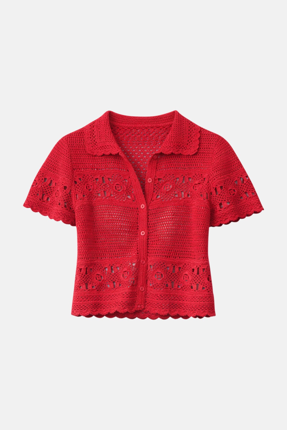 - Crochet detailing through out the body, sleeves and hems.