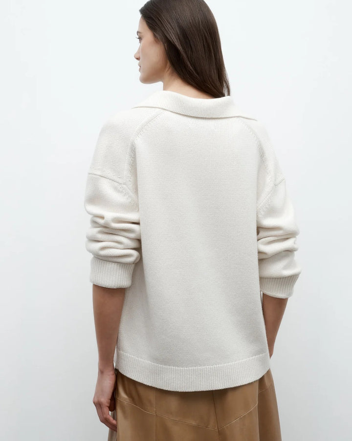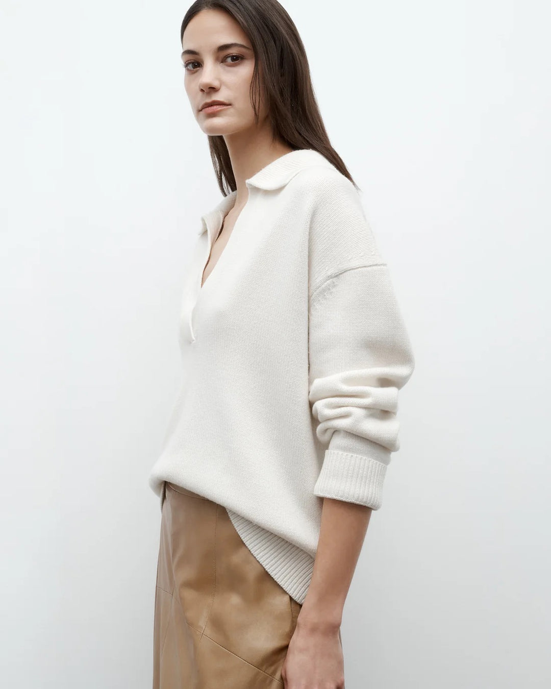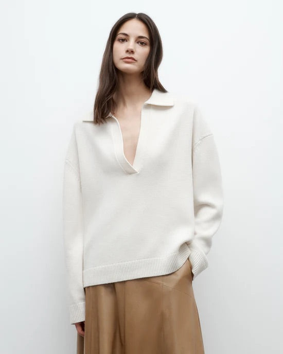 Oversized V neck henley, in 5-gauge cashmere. Our cashmere is spun at an Italian heritage mill from single-origin yarns sourced for their unparalleled softness. The Boy Henley is a relaxed, slouchy silhouette. Fully fashioned at the collar and arm-holes. Complete with a ribbed finish at the cuffs and hem.
