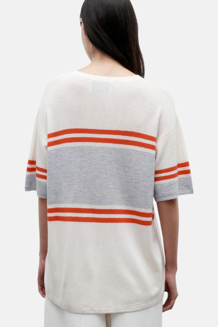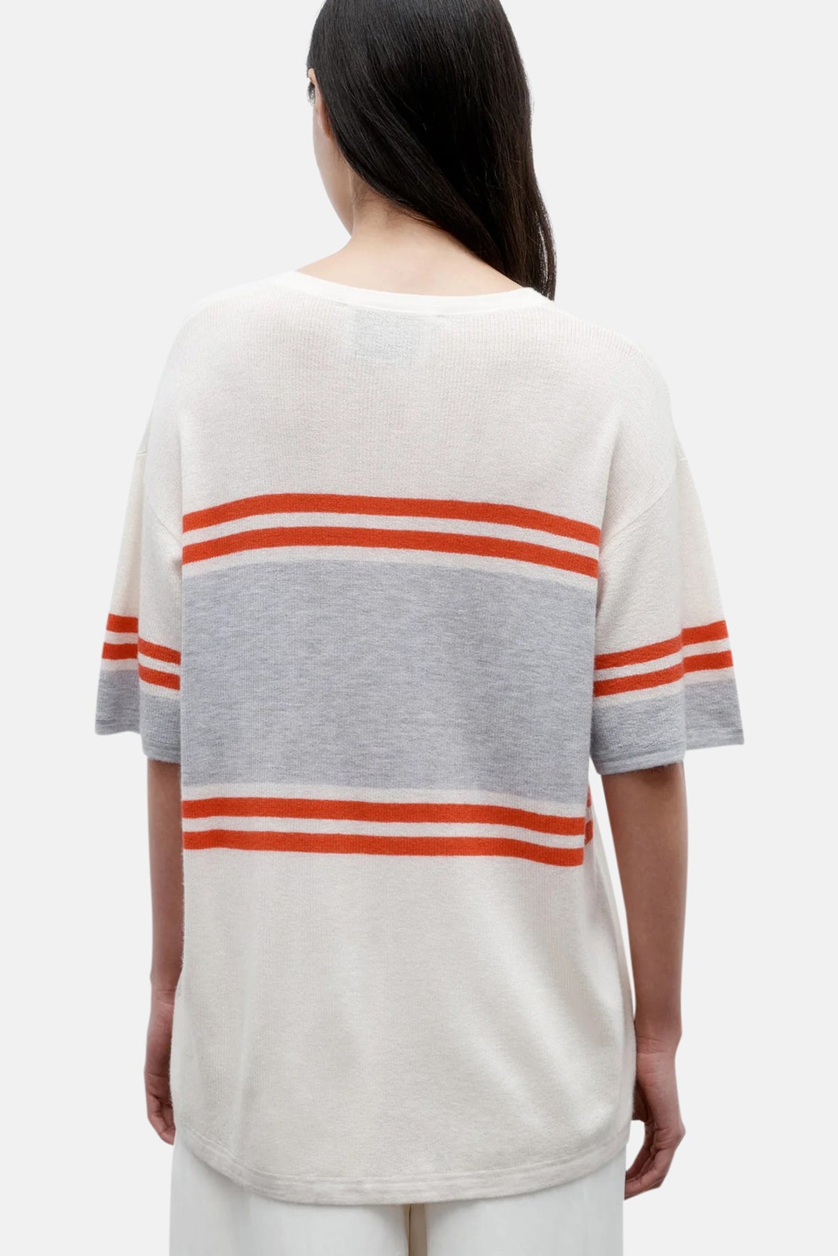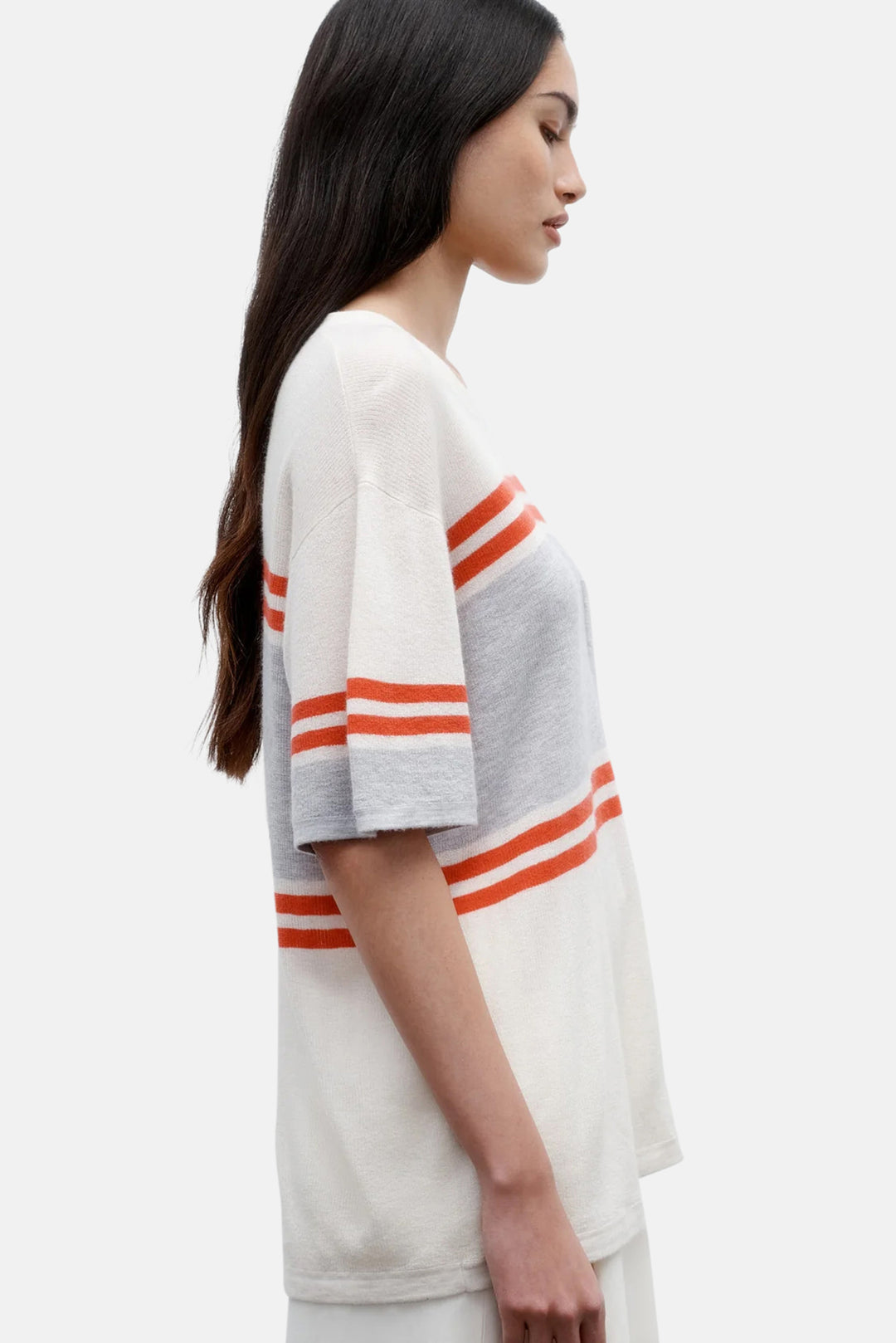 Oversized, slouchy round-neck t-shirt in striped super-fine lightweight cashmere. The Big Boy Tee has a chest patch pocket and is fully fashioned at the neck and cuff.