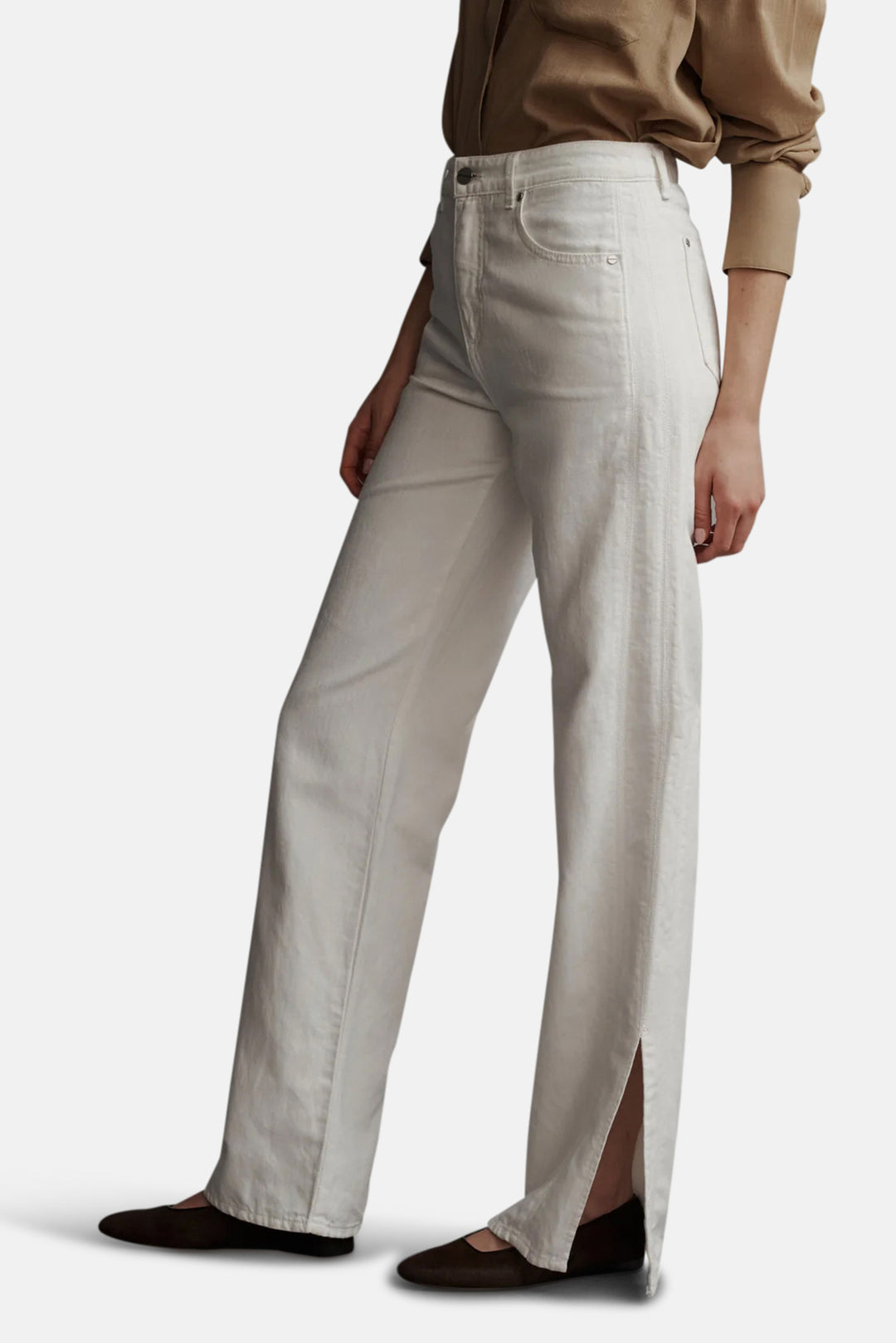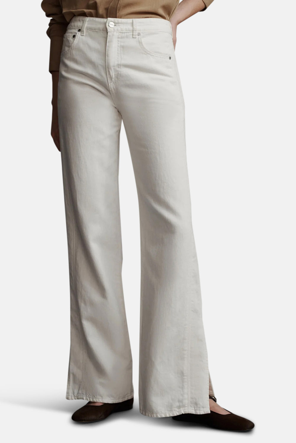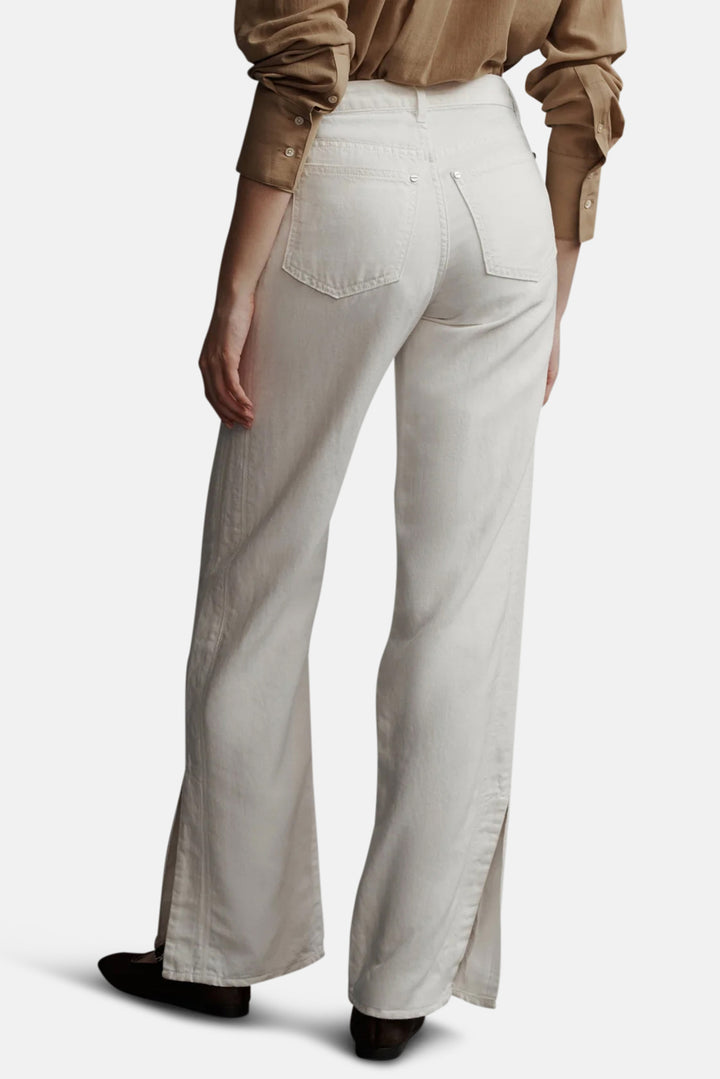 Mid-rise bootcut jeans in japanese denim, manufactured in LA. This jean is fitted at the hip with a straight leg, three side seams, and side slits at the hem. Complete with a five pocket style, a zip-fly, and metal shank at the waistband. If between sizes, we recommend sizing up.