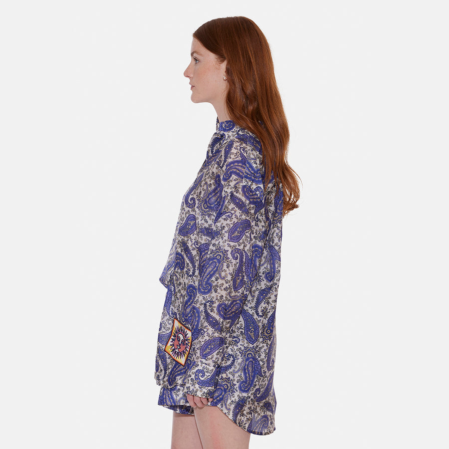- Color: Indigo/Cream Paisley- Front button closure- Buttoned cuffs- Lightweight fabric- 100% Silk- Style #: 7934TSS231 ICPACare Instructions:- Dry clean only