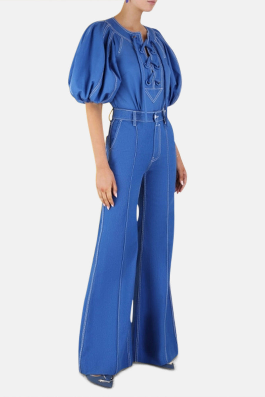 The High Tide Flare Jean appeared in look 17 of the Resort 2023 Runway. Style the jean with the High Tide Nautical Crop Jacket and Backless Boat Shoe to complete the runway look.