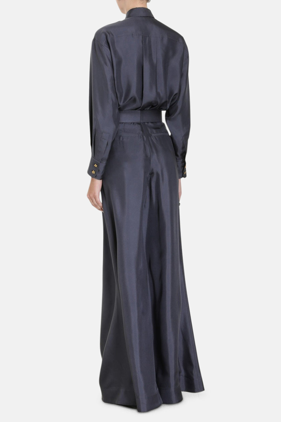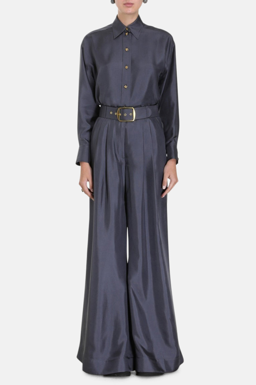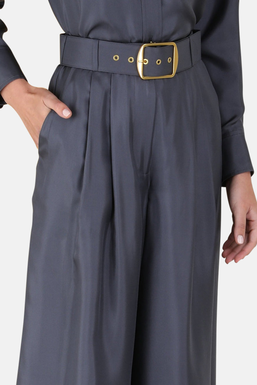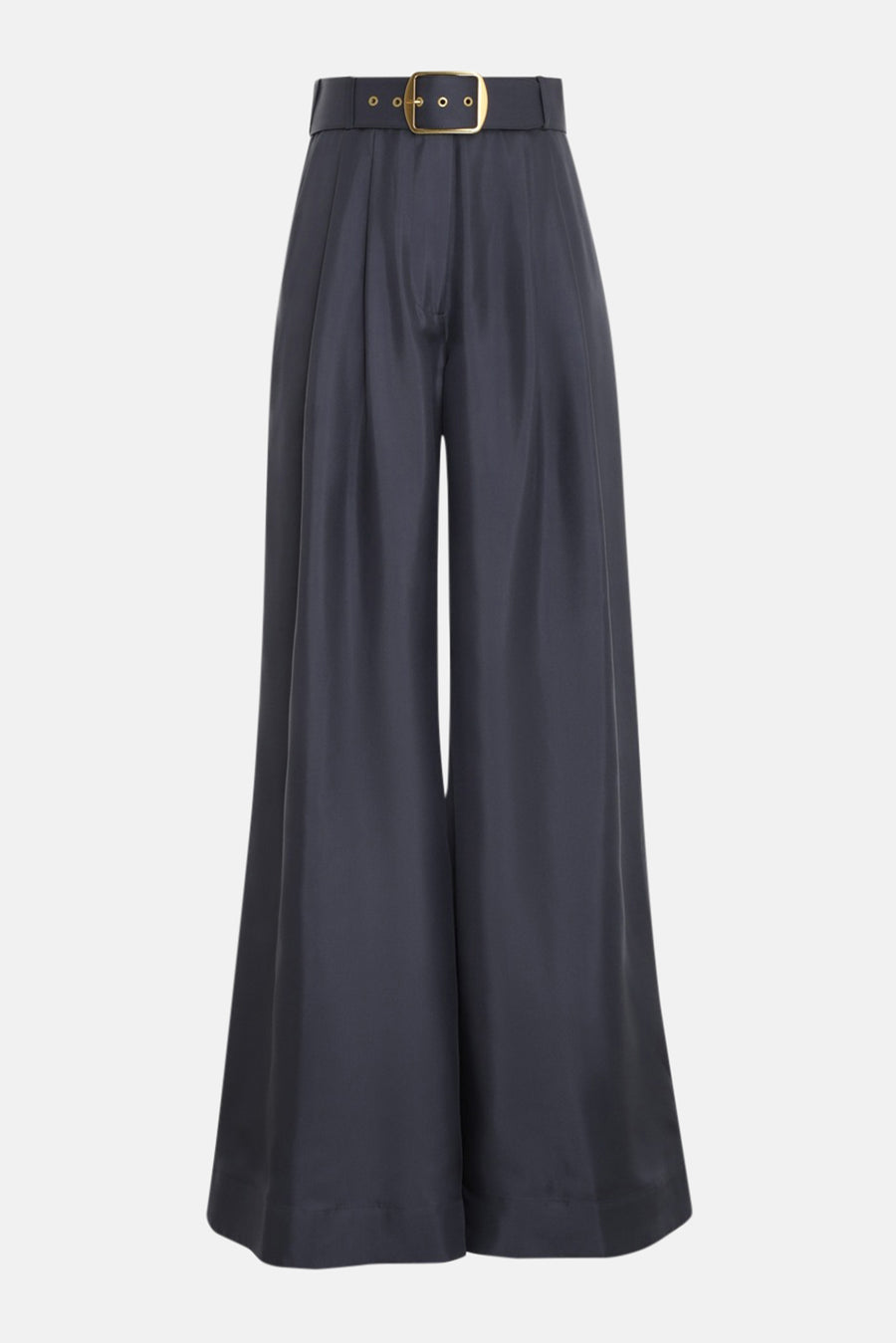 - Color: Paradise Navy- 100% Silk- High-waisted, wide leg silhouette- Twill pant- Slant side pocket- Hook and bar closure- Removable belt- Style #: 1069PF232 PRDNVY