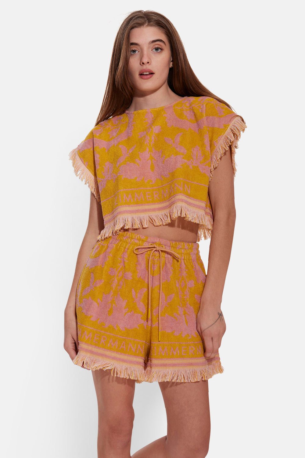 Crafted of cotton toweling, these logo-printed shorts from Zimmermann are styled with a drawstring waistband and side slip pockets.